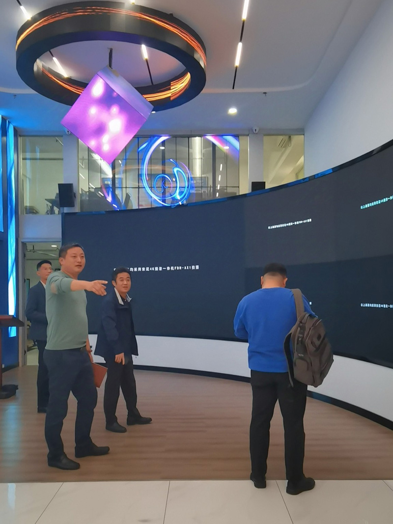 在總經理惠鴻旭的陪同下,京東方的領導們參觀了湖北旭峰展廳,詳細了解旭峰發展歷程、展廳產品布局、產品維修售后等各方面情況。